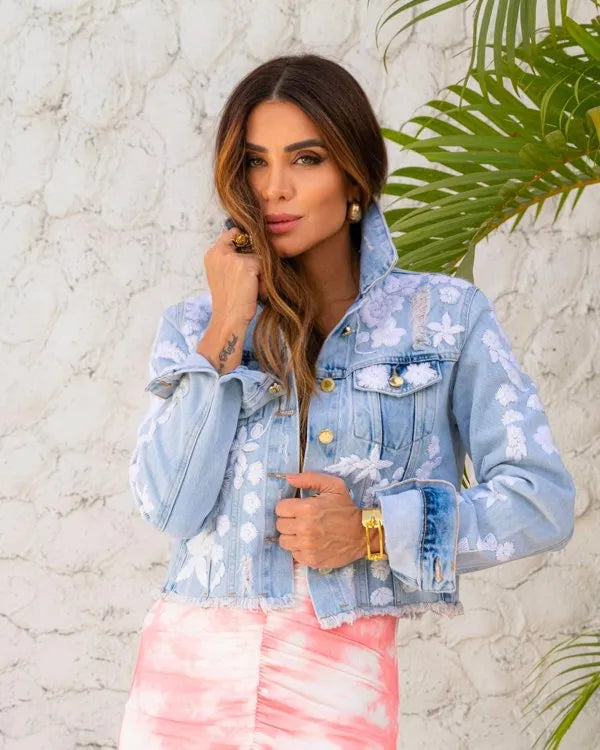 A Jaqueta Bordada Em Linha Flores Brancas é a peça perfeita para quem busca estilo e conforto em um só produto. Confeccionada em tecido de alta qualidade, possui bordados delicados de flores brancas em linha, que adicionam um toque de feminilidade ao visual.