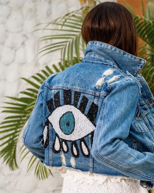 A jaqueta bordada olho grego é perfeita para quem busca um visual único e cheio de estilo. Com detalhes bordados à mão, essa peça é ideal para compor looks descolados e modernos.