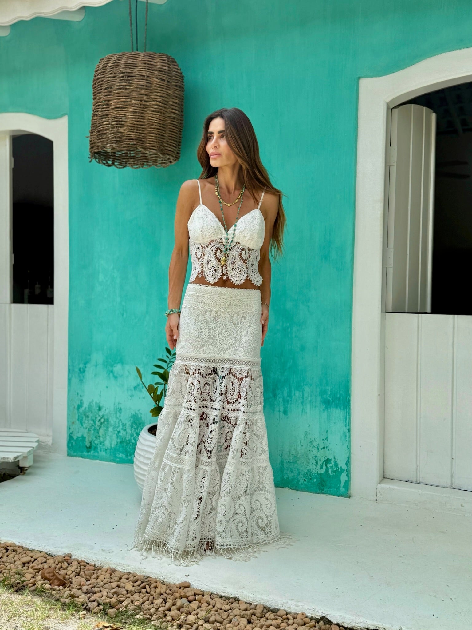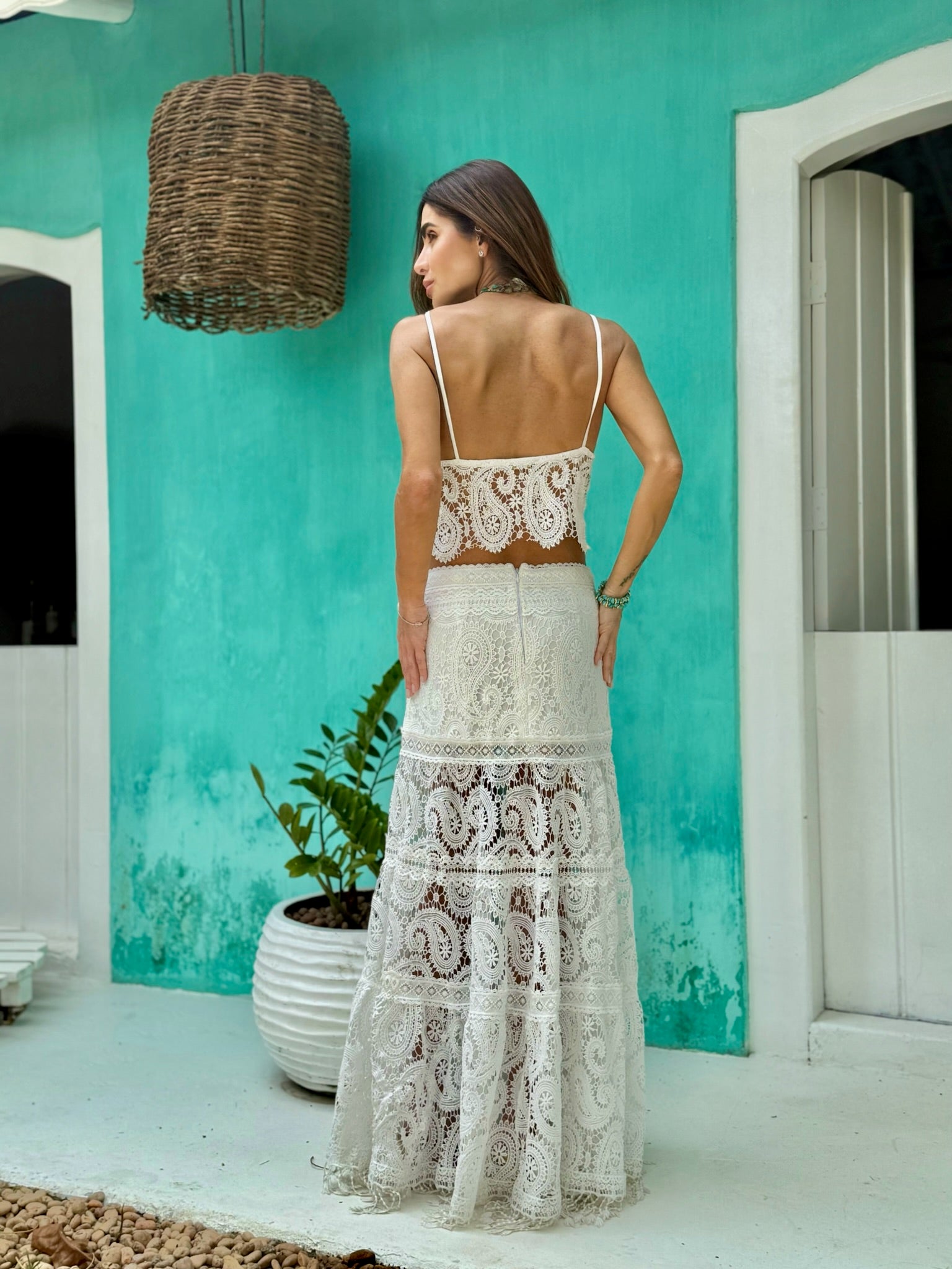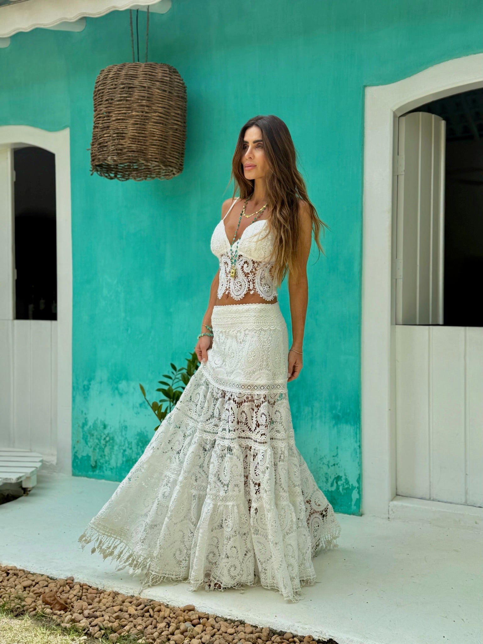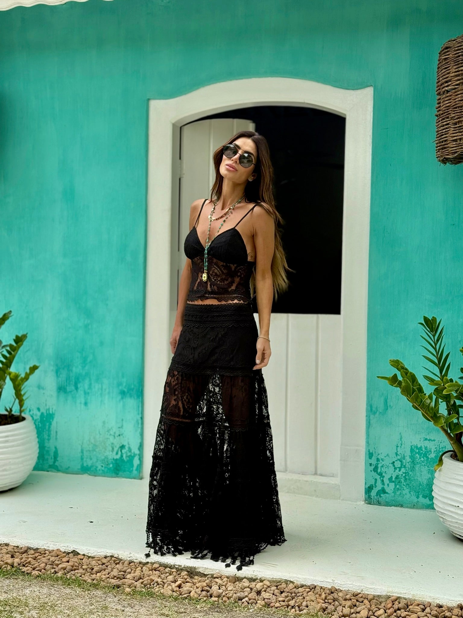 • Saia E Top De Renda Com Entremeios