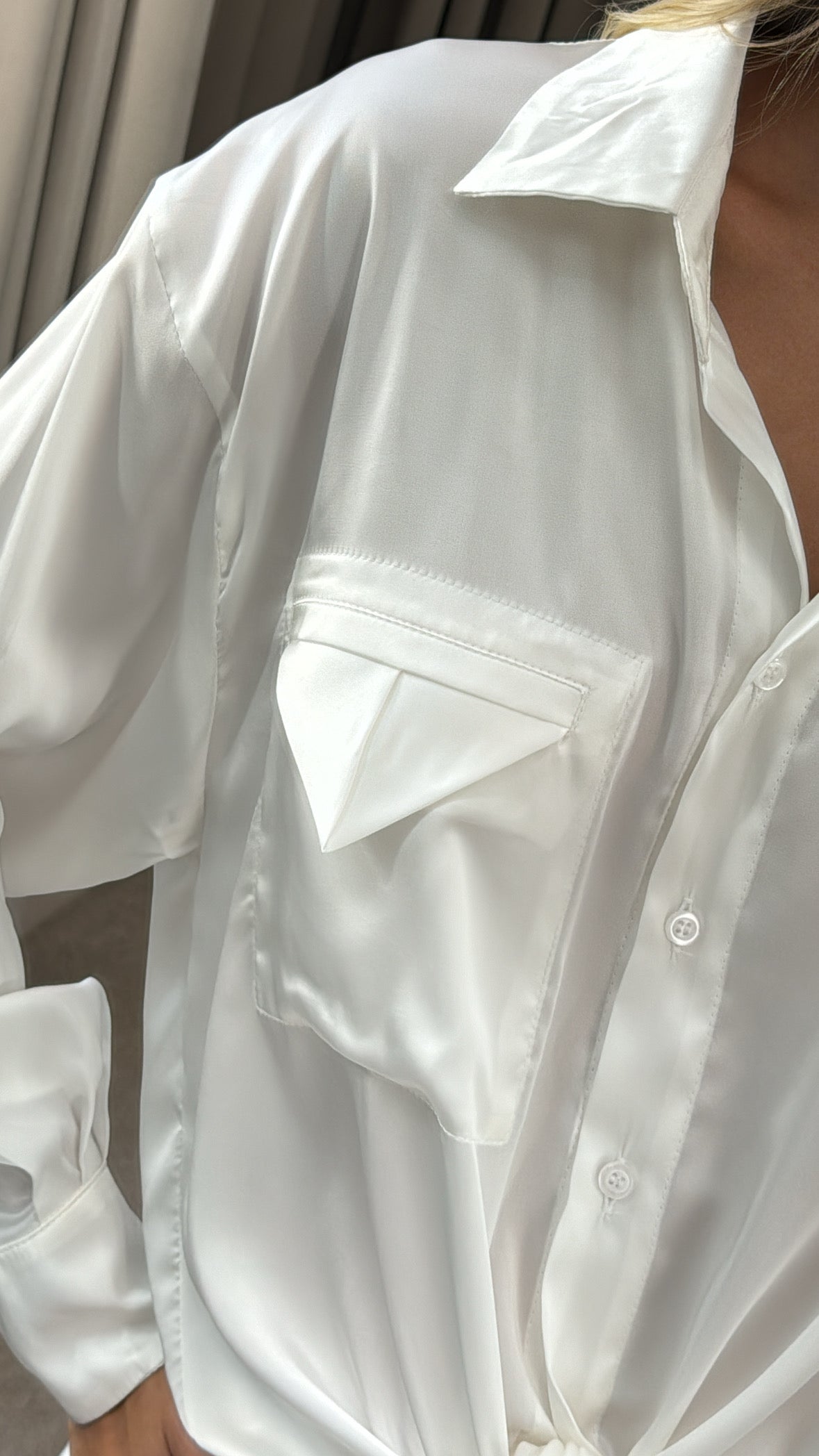 Camisa em Cetim com Bolso Triangular