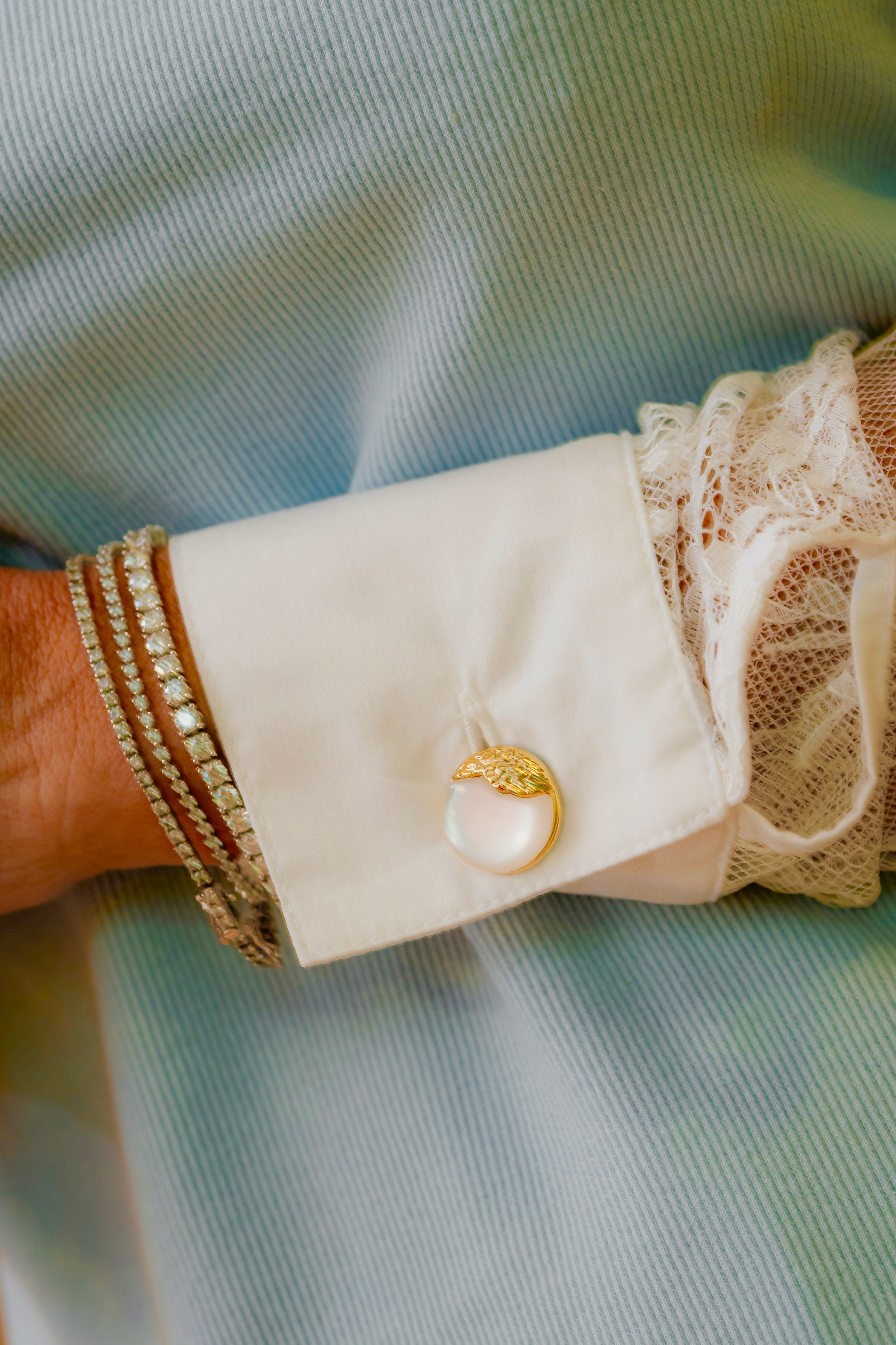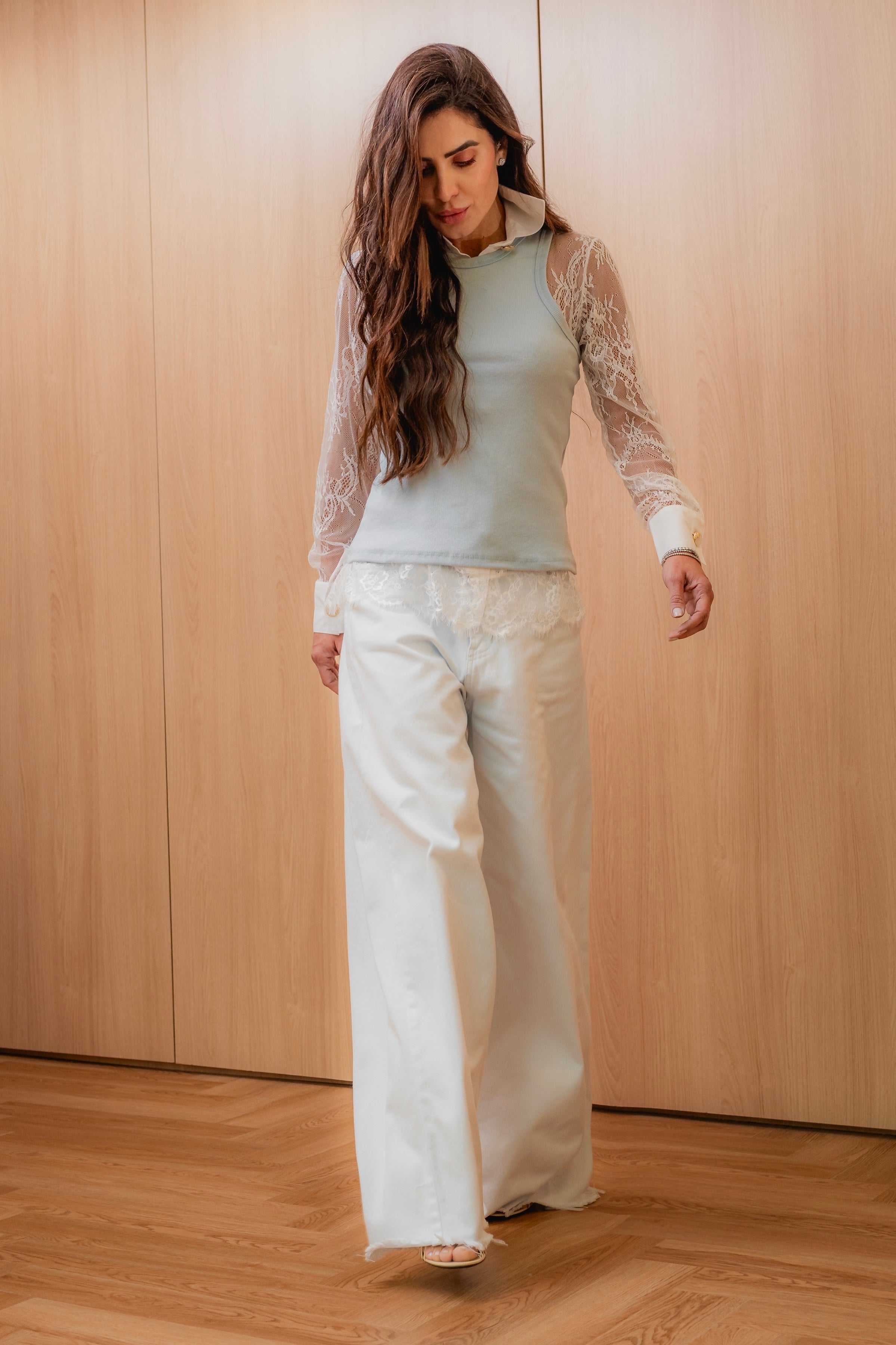 • Camisa Renda com Tricoline Manga Longa